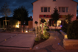 Sehen Sie, wie Sie die Wirkung ihrer BĂ€ume und Gehölzer durch gezielt gesetzte Strahler verĂ€ndern können und wie Sie Treppen und Wege auch im Dunkeln erstrahlen lassen. Wir haben beleuchtete Pflastersteine und die unterschiedlichsten Moonlights fĂŒr Sie zur Auswahl. Mit diesen Details können Sie ganz besondere Akzente setzen und eine auĂergewöhnliche AtmosphĂ€re schaffen. Kommen Sie vorbei und lassen Sie die unterschiedlichen Beleuchtungen auf sich wirken.