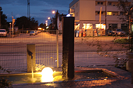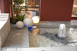 beleuchtete Moonlights und Minidots in der Mauer, Belag und im Wasser